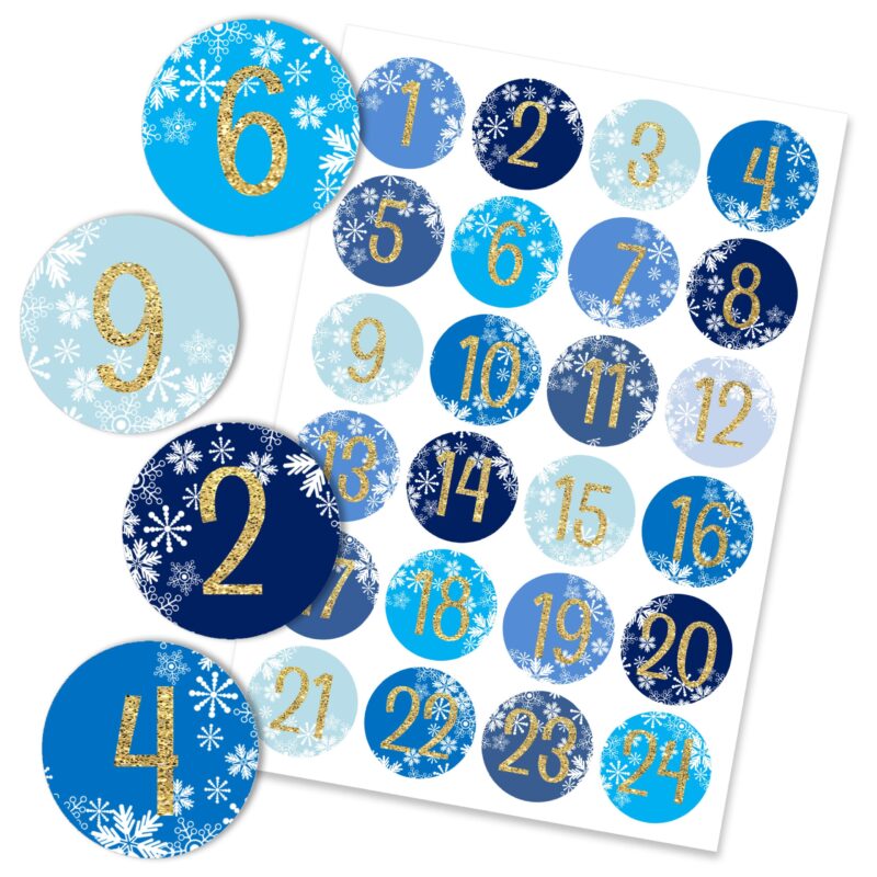 24 Adventskalender Zahlenaufkleber – Eiskristalle in kaltem Blau