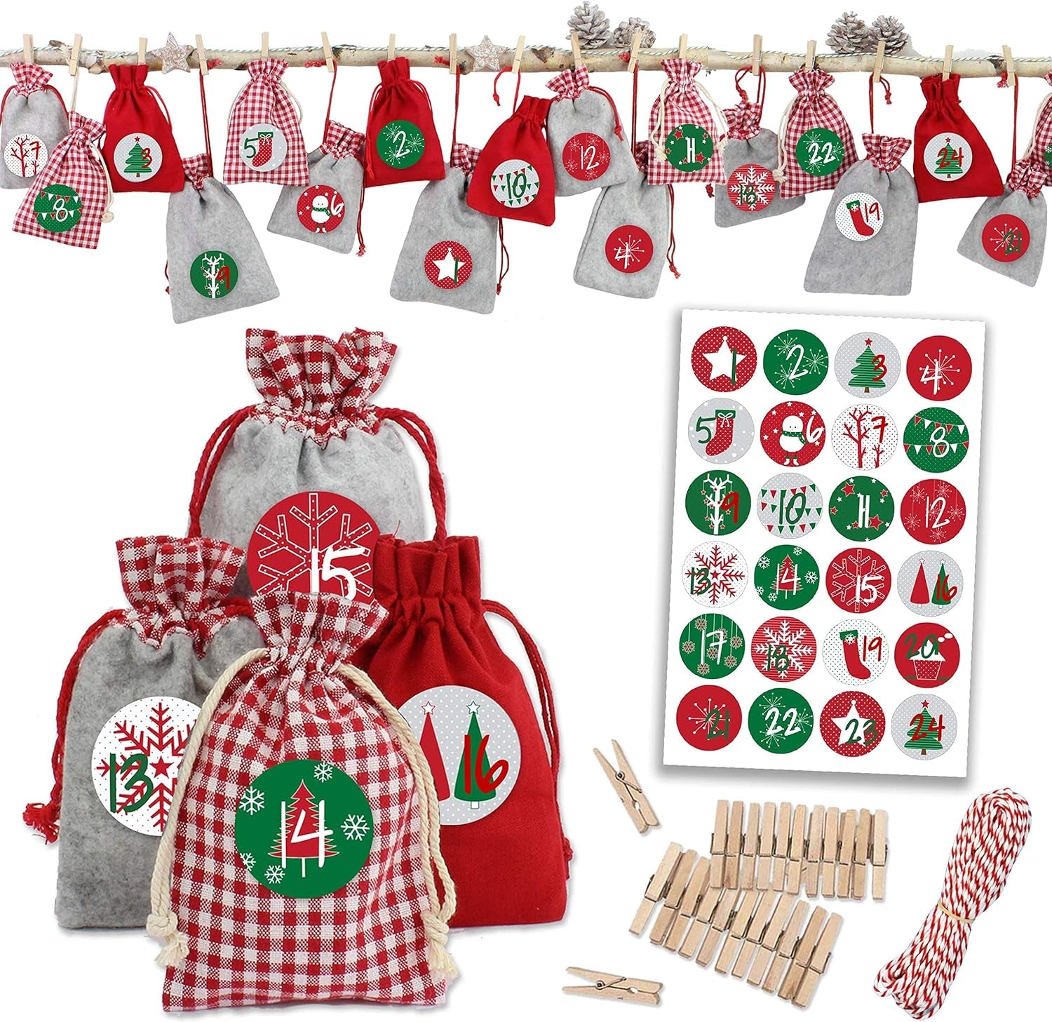 Die Weihnachtszeit naht und somit wird es Zeit sich über einen Adventskalender Gedanken zu machen. Ein Adventskalender erfreut mittlerweile nicht nur Kinder. Auch Erwachsene haben an den täglichen Überraschungen ihre Freude. Verzaubere Deine LIebsten in diesem Jahr mit einem selbst gebastelten Adventskalender. Der Adventskalender zum Befüllen Grau-Rote Säckchen ist ein Adventskalender, der sich sowohl für Männer, als auch für Frauen eignet. Versüße Deinen Liebsten die Wartezeit bis zum Weihnachtsfest mit diesem schicken DIY Adventskalender, der kinderleicht gebastelt werden kann.