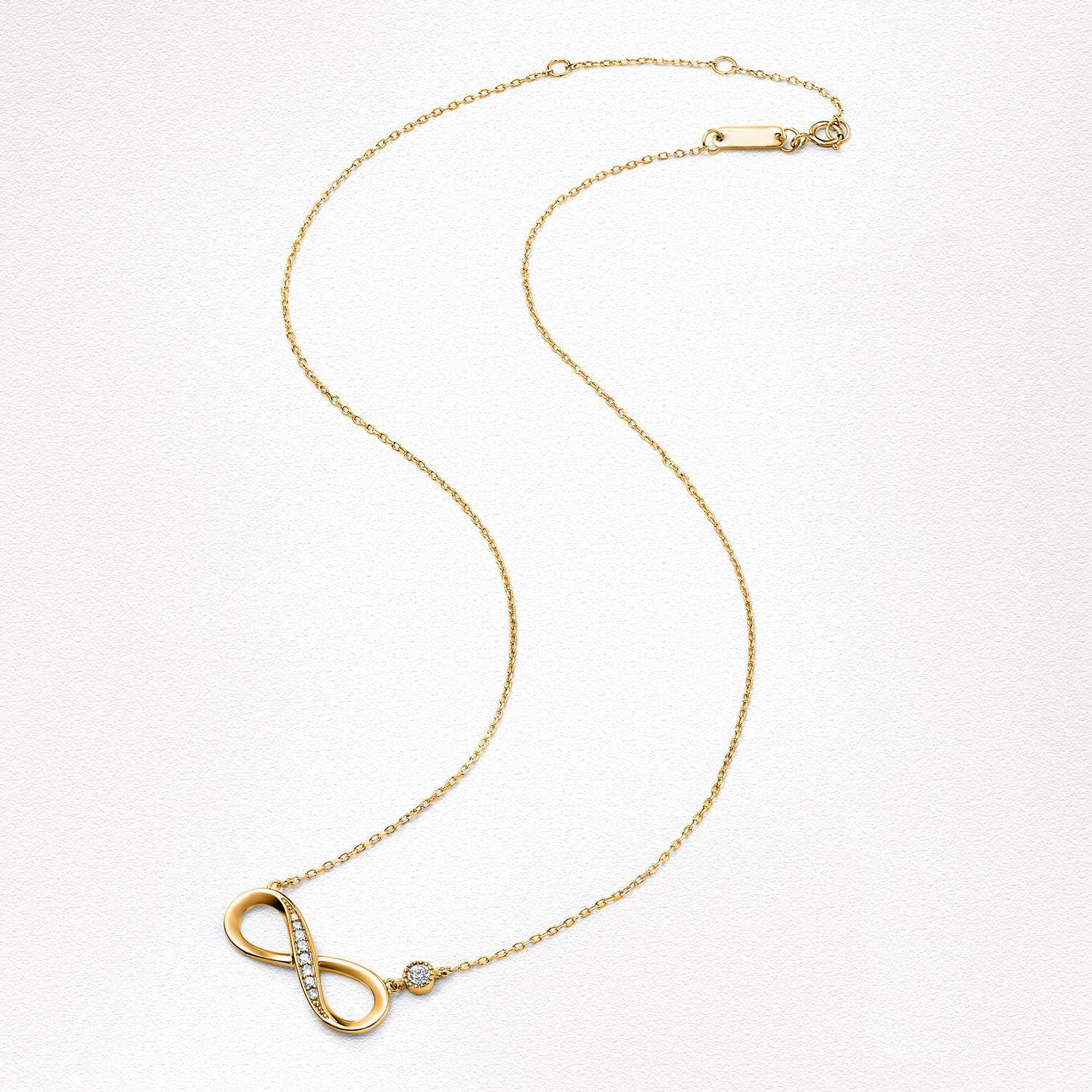 Die Halskette ist aus 925er silber gefertigt und 45 cm lang. Sie trägt einen besonderen Anhänger, der die Form des Unendlichkeitzeichens hat. In dem Anhänger befinden sich glitzernde Strasssteinchen. Ein weiteres Steinchen findest Du an der linken Seite der Kette. Das Schmuckstück ist in silber, gold und rosé erhältlich. Wähle im Zweifel die Variante, die am besten zum restlichen Schmuck passt, so kann Deine Liebste die Kette mit Uhren, Armbändern und Ohrringen kombinieren.