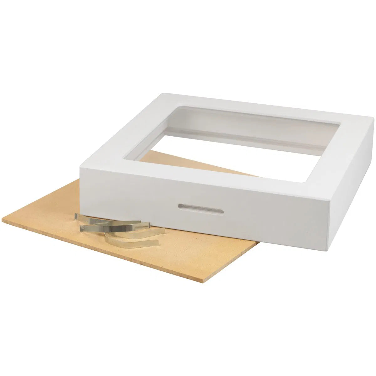 Mit diesem 3D Bilderrahmen zum Selbstgestalten kannst Du wundervolle Geschenke selbst gestalten. Egal ob als Geldgeschenk, für Gutscheine oder als besondere Glückwunschkarte, ganz bestimmt wirst Du damit auffallen und für Bewunderung sorgen. Lass Deiner Phantasie freien Lauf. Der weiße Bilderrahmen hat eine Größe von 15 x 15 x 5 cm. Gestalte mit kleinen Babyartikeln eine Glückwunschkarte zur Geburt oder Taufe, mit Herzen eine Liebeserklärung an Deinen Partner, oder mit Blumen und Pailletten eine Geburtstagskarte. Als Urlaubserinnerung kannst Du kreativ mit Muscheln sein und für eine Hochzeit kannst Du Herzen, Perlen oder Schmetterlinge verwenden. Benutze Aufkleber, kleine Anhänger, Lichterketten oder Kuscheltiere. Hier kannst Du Deiner Phantasie mal so richtig freien Lauf lassen und kreativ werden. Dein Ergebnis wird Dich sicher stolz machen. Und ganz sicher werden auch Deine Beschenkten ganz begeistert über Dein einzigartiges Geschenk sein.