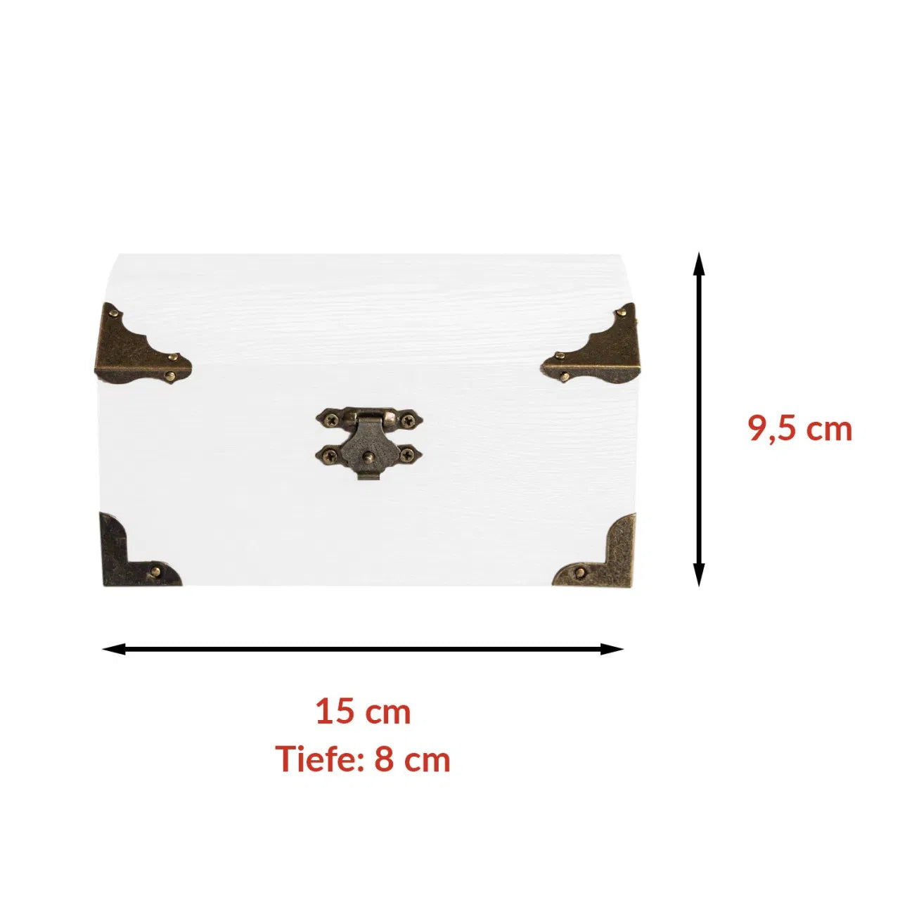 Bist Du auf der Suche nach einem ganz besonderen Geschenk zum Geburtstag? Dann haben wir etwas, das Dein Geschenk zu etwas Magischem macht! Unsere Schatzkiste - Weiß zum Geburtstag ist nicht nur ein praktisches Geldgeschenk, sondern auch eine wunderschöne Erinnerungsbox. Mit ihrer Antik-Optik und den liebevollen Details ist sie ein wahres Schmuckstück. Lass uns gemeinsam das Geburtstagskind mit diesem einzigartigen Geschenk überraschen und sein Strahlen in den Augen sehen.
