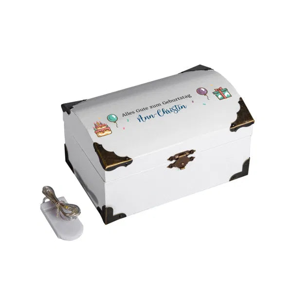 Personalisierbare Schatzkiste - Weiß zum Geburtstag