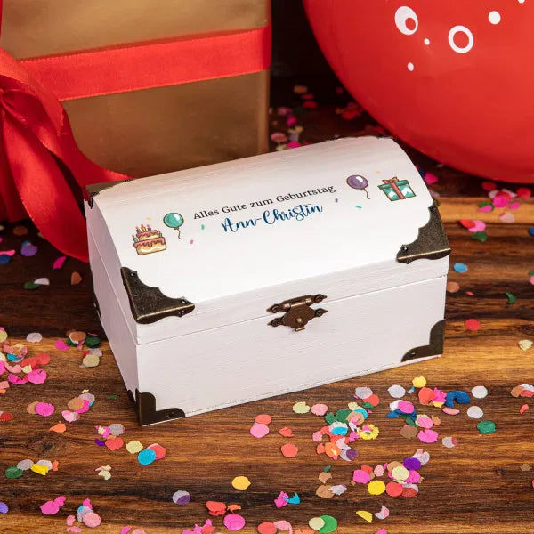 - Schatzkiste mit Aufdruck: Eine originelle Idee zum Geburtstag - das ideale Geschenk für besondere Anlässe.