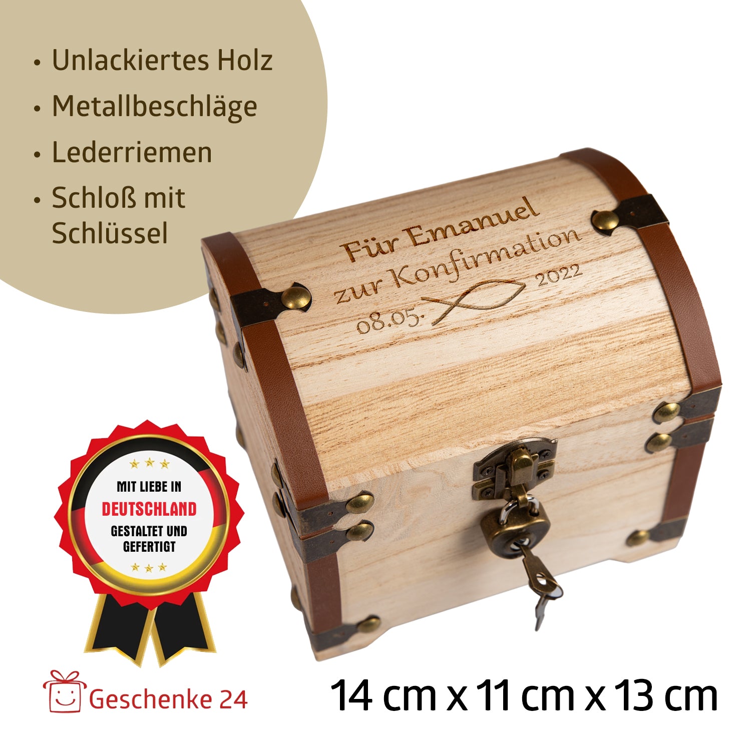 Persönliche Schatztruhe zur Konfirmation mit individueller Gravur