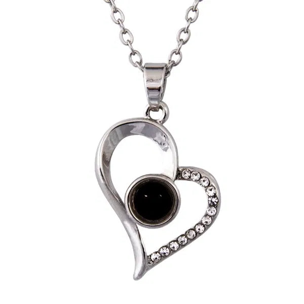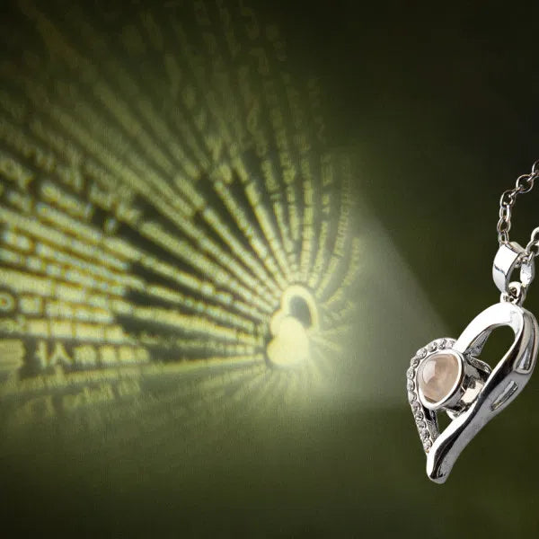 - Edle Halskette in Silberoptik, die „Ich liebe Dich“ in 100 Sprachen projiziert