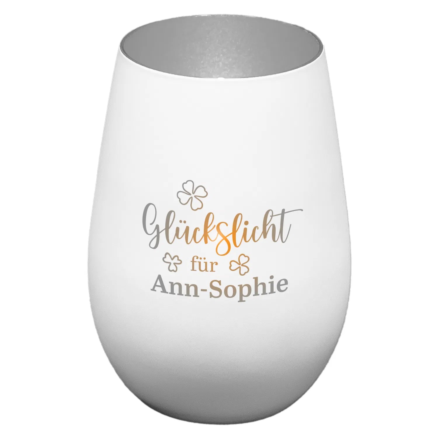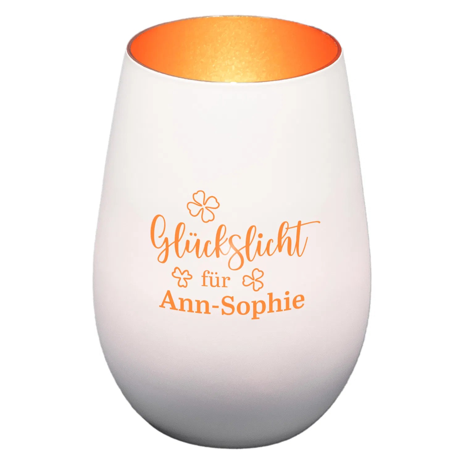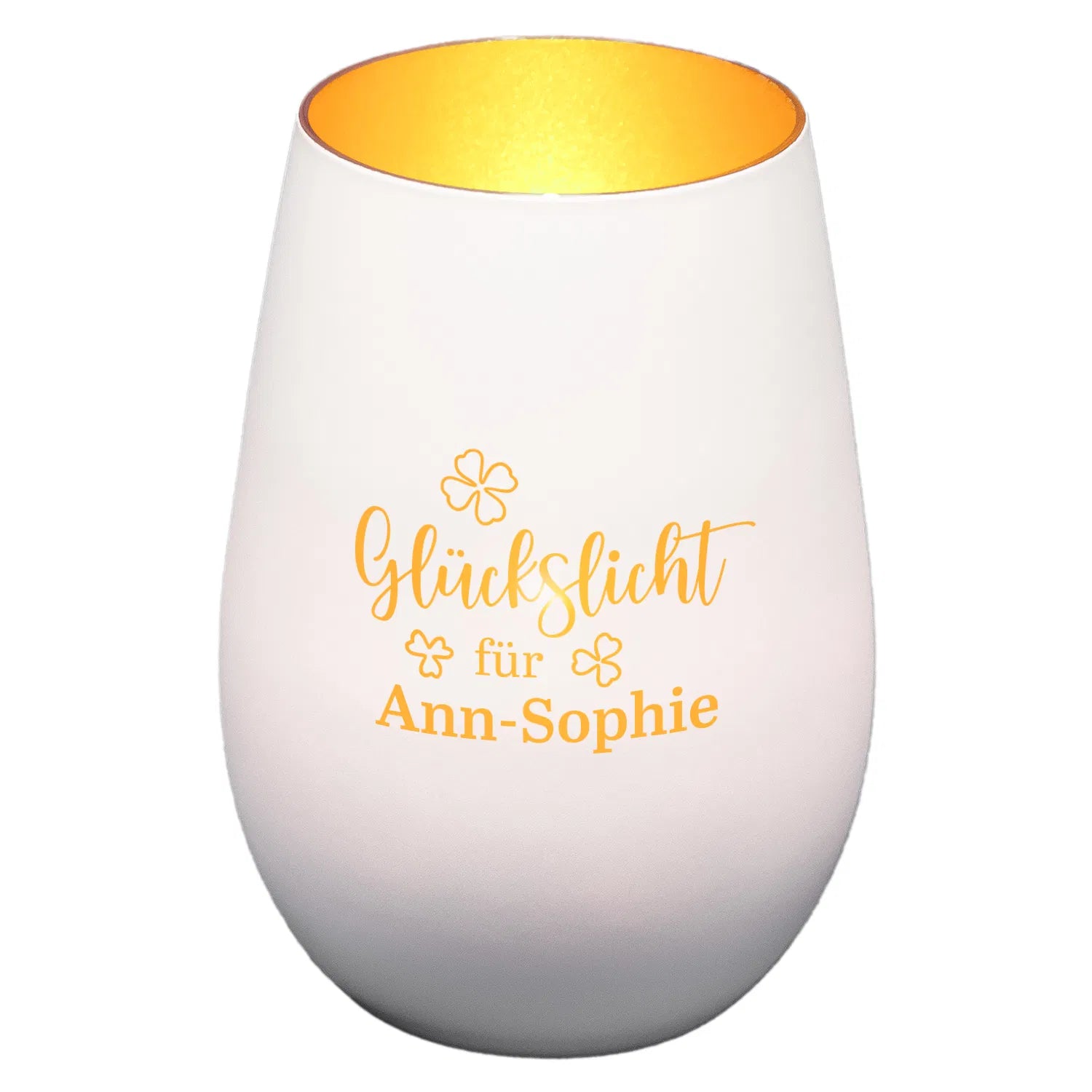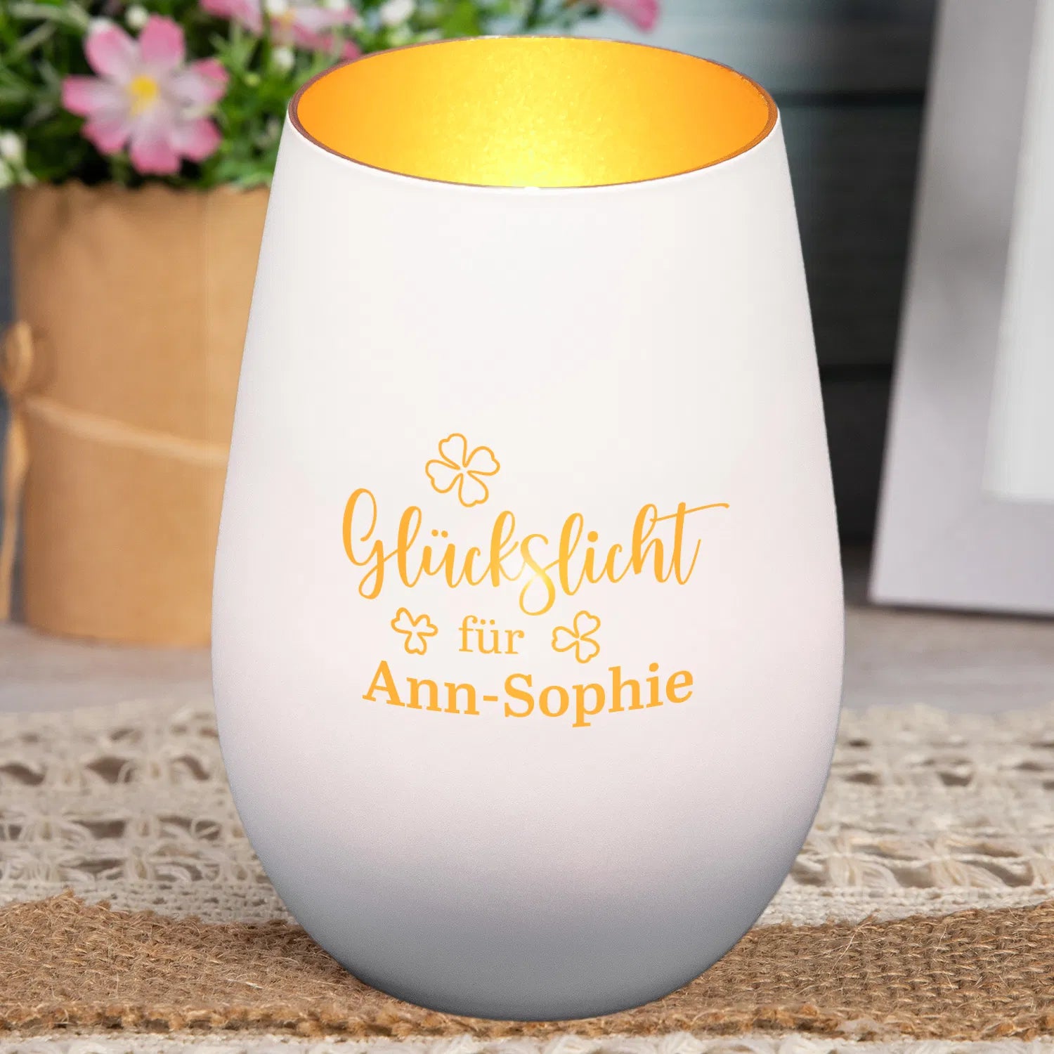 Unser Glückslicht ist mehr als nur eine Lichtquelle - es ist ein persönliches Statement. Hergestellt aus beschichtetem Kristallglas und in verschiedenen Farbkombinationen erhältlich, kannst Du zwischen einem künstlerischen Kleeblatt-Motiv für Glücksmomente oder einer strahlenden Sonne für besondere Menschen wählen. Das Beste daran? Du kannst es mit einem individuellen Wunschnamen versehen lassen, um jedem Geschenk eine persönliche Note zu verleihen. Egal ob zum Geburtstag oder einfach als Zeichen der Wertschätzung - unser Glückslicht ist ein Geschenk, das Herzen erhellt und für immer in Erinnerung bleibt.