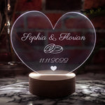 - Individuelle Gravur: Das 4 mm dicke Acrylglas der Leuchte wird mit zwei Wunschnamen und dem Hochzeitsdatum personalisiert.