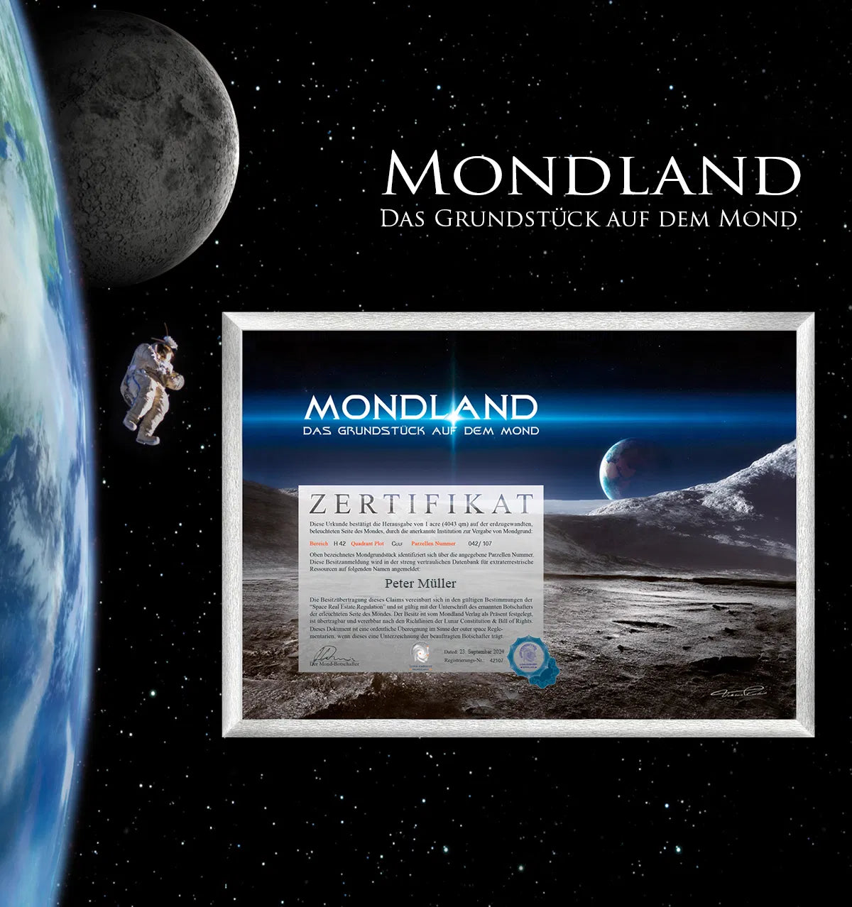 Du suchst ein außergewöhnliches Geschenk, das für Staunen sorgt? Mit einem eigenen Mondgrundstück verschenkst Du ein Stück des Universums – ein Symbol für Träume, Weite und Unvergänglichkeit. Egal, ob zur Geburt, zur Taufe oder zum Geburtstag, dieses originelle Präsent ist eine ganz besondere Überraschung.