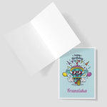 Innen ist die Karte bewusst leer gelassen, bereit, von Dir mit Deinen eigenen Worten gefüllt zu werden. Du kennst Dein Geburtstagskind am besten, also lass Deiner Kreativität freien Lauf! Schreibe einen lustigen Witz, eine herzliche Nachricht oder erzähle, warum gerade dieses Geschenk so perfekt ist. Und dann, wenn Du diese Karte zusammen mit Deinem Geschenk überreichst, wird dieser Geburtstag sicher unvergesslich.