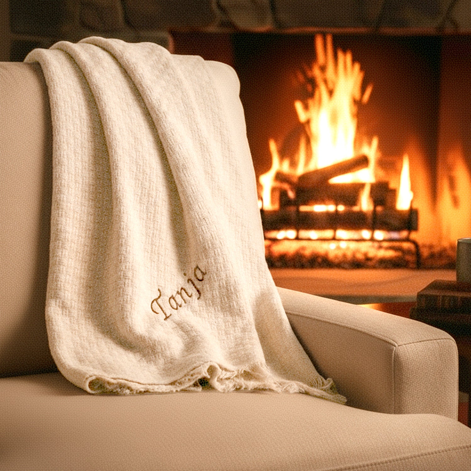 Fazit: Diese Decke vereint Leichtigkeit, Wärme und Persönlichkeit. Mit Stickerei wird sie zum ganz besonderen Erinnerungsstück, das Gemütlichkeit und Liebe in den Alltag bringt.