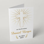 - Einzigartiges Design: Das strahlende Kreuz in warmen Goldtönen verleiht der Grußkarte zur Konfirmation eine besondere Eleganz.