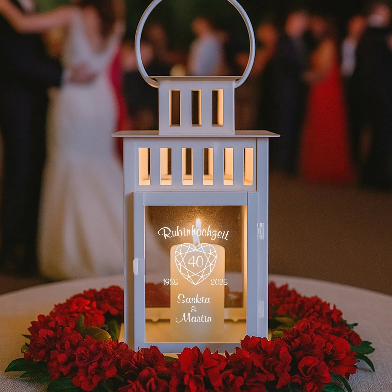 Ob als Deko für die Jubiläumsfeier oder als bleibende Erinnerung im Garten oder Wohnzimmer – diese Rubinhochzeitslaterne bringt Liebe zum Leuchten. Dank der hochwertigen Verarbeitung ist sie ein langlebiger Blickfang für viele weitere gemeinsame Jahre.