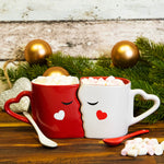 - Küssende Tassen im Set: Die Tassen im roten und weißen Design mit je einem passenden Löffel ergänzen sich perfekt.