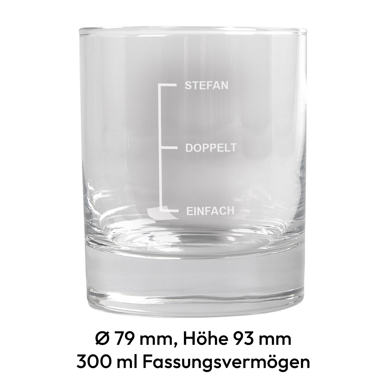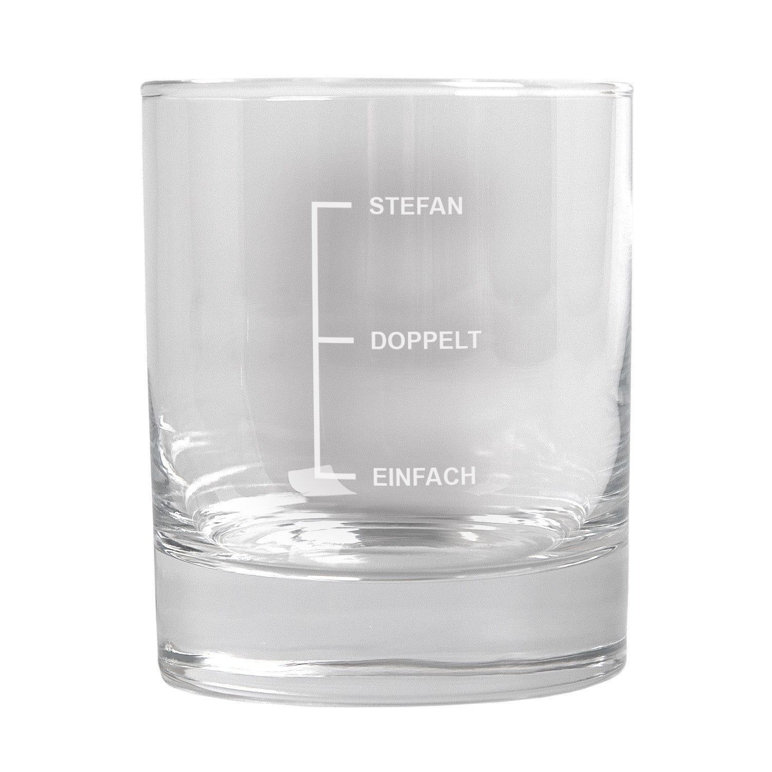 - Gravurmotiv: Graviert wird das Glas mit dem Schriftzug "Einfach - Doppelt - Deinem Wunschnamen"