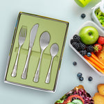 - Alles dabei: Es sind zwei verschieden große Löffel, eine Kindergabel und ein Kindermesser enthalten. Das Set befindet sich in einem Geschenkkarton.