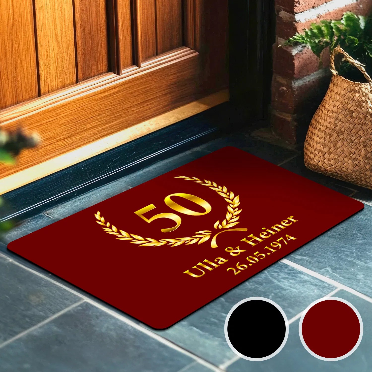 Praktisches Geschenk zu Goldhochzeiten - personalisierte Fußmatte