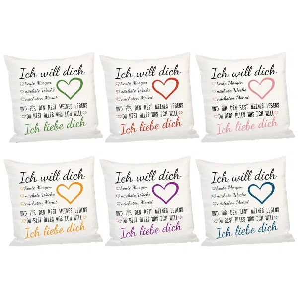 - Aus Liebe: Verschenke ein bedrucktes Kissen mit Spruch - "Ich will Dich" und "Ich liebe Dich" und das nicht nur heute, morgen oder übermorgen!