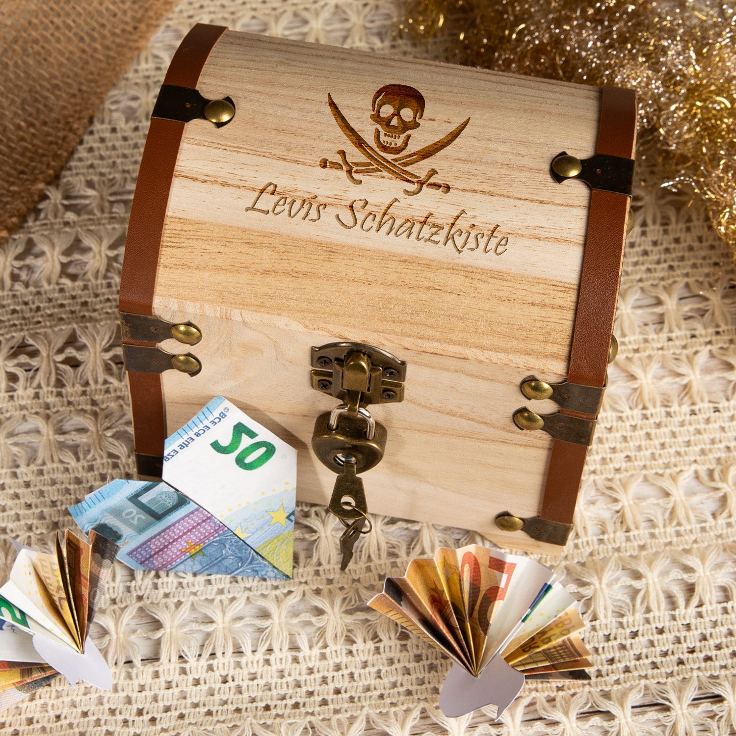 Ein echter Schatz für die kleinen Piraten in Deiner Familie versteckt sich zum Geburtstag oder zu Weihnachten am besten in der Schatztruhe für Kinder. Überrasche mit dieser besonderen Geschenkidee und sorge für Begeisterung. Die Schatztruhe eignet sich hervorragend für kleine Geschenke oder Geldgeschenke.