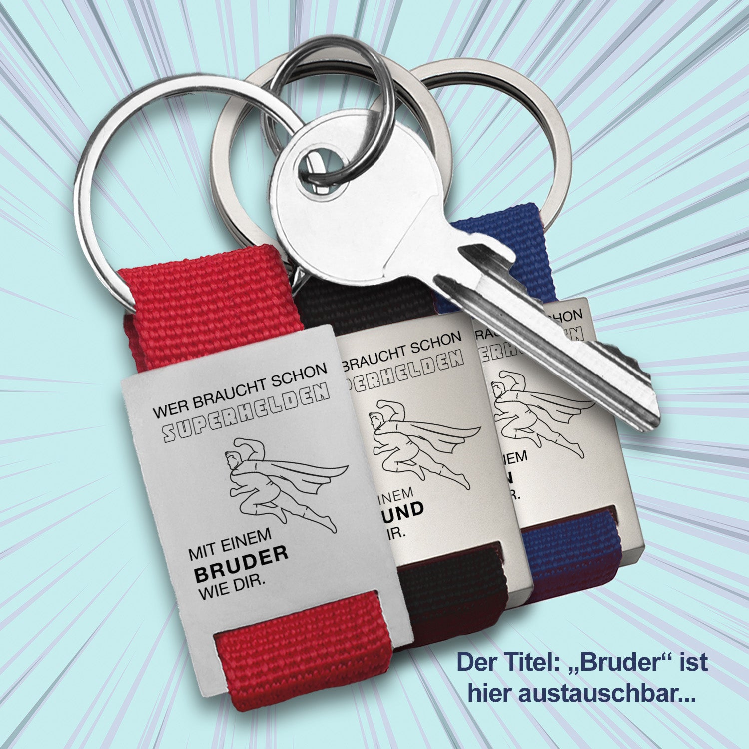Mit diesem Geschenk für Helden überreichst Du ein einzigartiges Präsent mit besonderen Erinnerungswert. Dein bester Freund, Dein Papa, Opa, Onkel oder Dein Partner wird diesen Schlüsselanhänger immer in Ehren halten und an Dich und den Moment der ehrenden Geschenkübergabe denken. Schenke dieses symbolische Schlüsselband für den Haustürschlüssel oder Autoschlüssel Deines Alltagshelden, so kann auch der größte Held keinen kleinen Schlüssel verlieren.