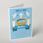 Für diesen bedeutsamen Tag haben wir etwas ganz Besonderes vorbereitet - unsere liebevoll gestaltete Grußkarte zur Taufe. Mit einem sanften Blauton und einem zarten Motiv des Taufbeckens, begleitet von Tauben und einem Kreuz, ist diese Klappkarte ein perfektes Symbol für diesen wichtigen Schritt im Leben des kleinen Täuflings.
