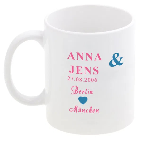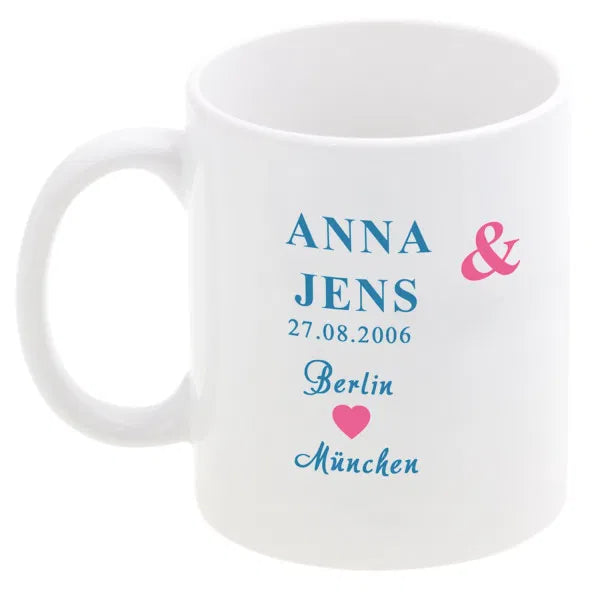- Personalisierung: Zwei Namen, ein Datum und zwei Orte Deiner Wahl verleihen dem Becher-Set seine persönliche Note.