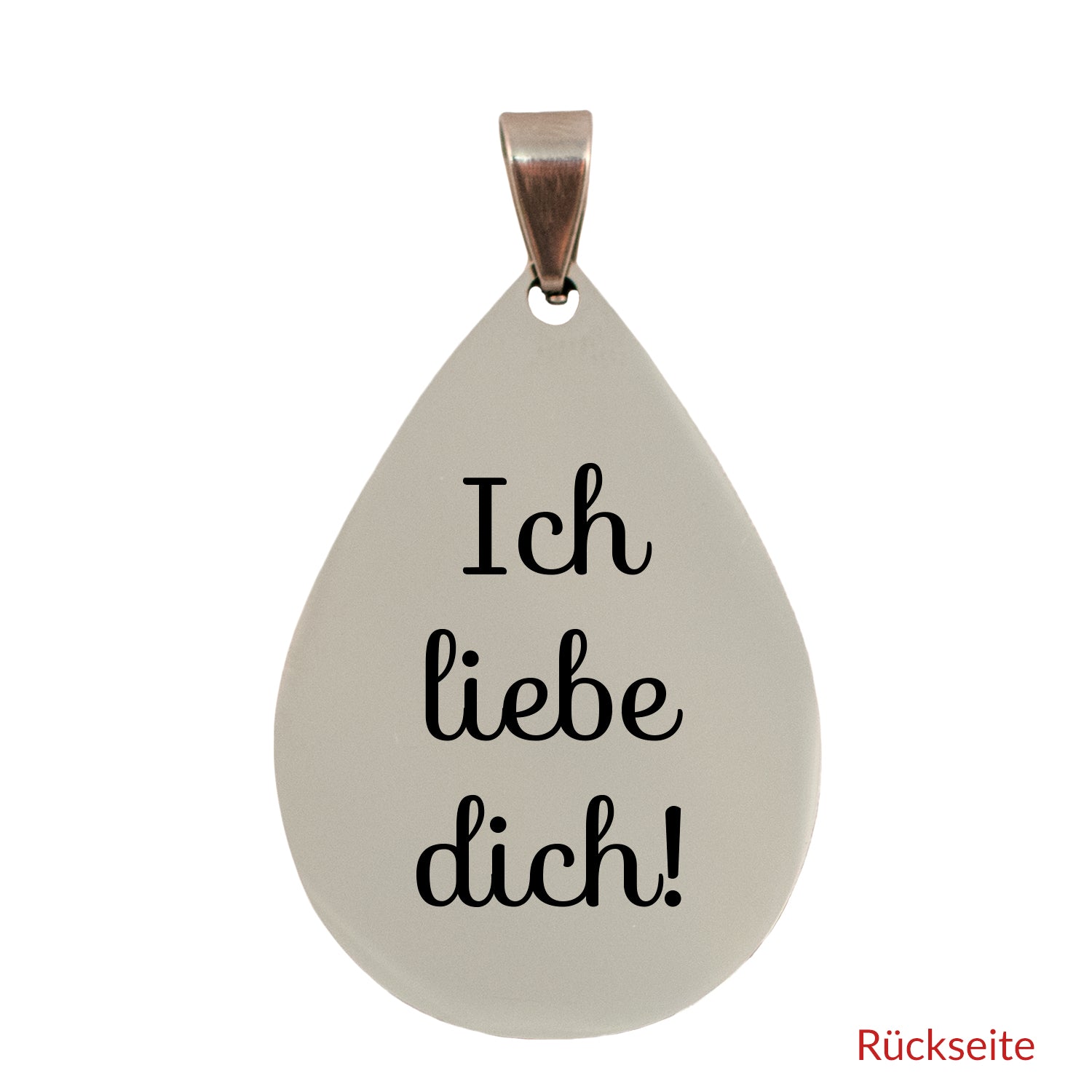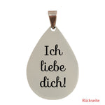 Ein besonderer Anlass steht an? Du möchtest Deine Partnerin oder Deinen Partner mit einer besonderen Geschenkidee überraschen? Dann haben wir das perfekte Geschenk für alle romantischen Anlässe, wie dem Valentinstag, dem Jahrestag, dem Hochzeitstag oder auch zum Geburtstag oder Weihnachten! Verschenke den Anhänger - Tropfen - Ich liebe Dich. Dieser zauberhafte Anhänger ist eine wunderschöne Möglichkeit Deiner Liebe Ausdruck zu geben. Überrasche Dein Herzblatt mit dieser charmanten Liebeserklärung auf einem ganz persönlichen Schmuckstück.