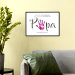 Variante 2: „Papa“ mit Platz für einen Handabdruck – Dein Wunschtext erscheint ober- und unterhalb des Schriftzuges.