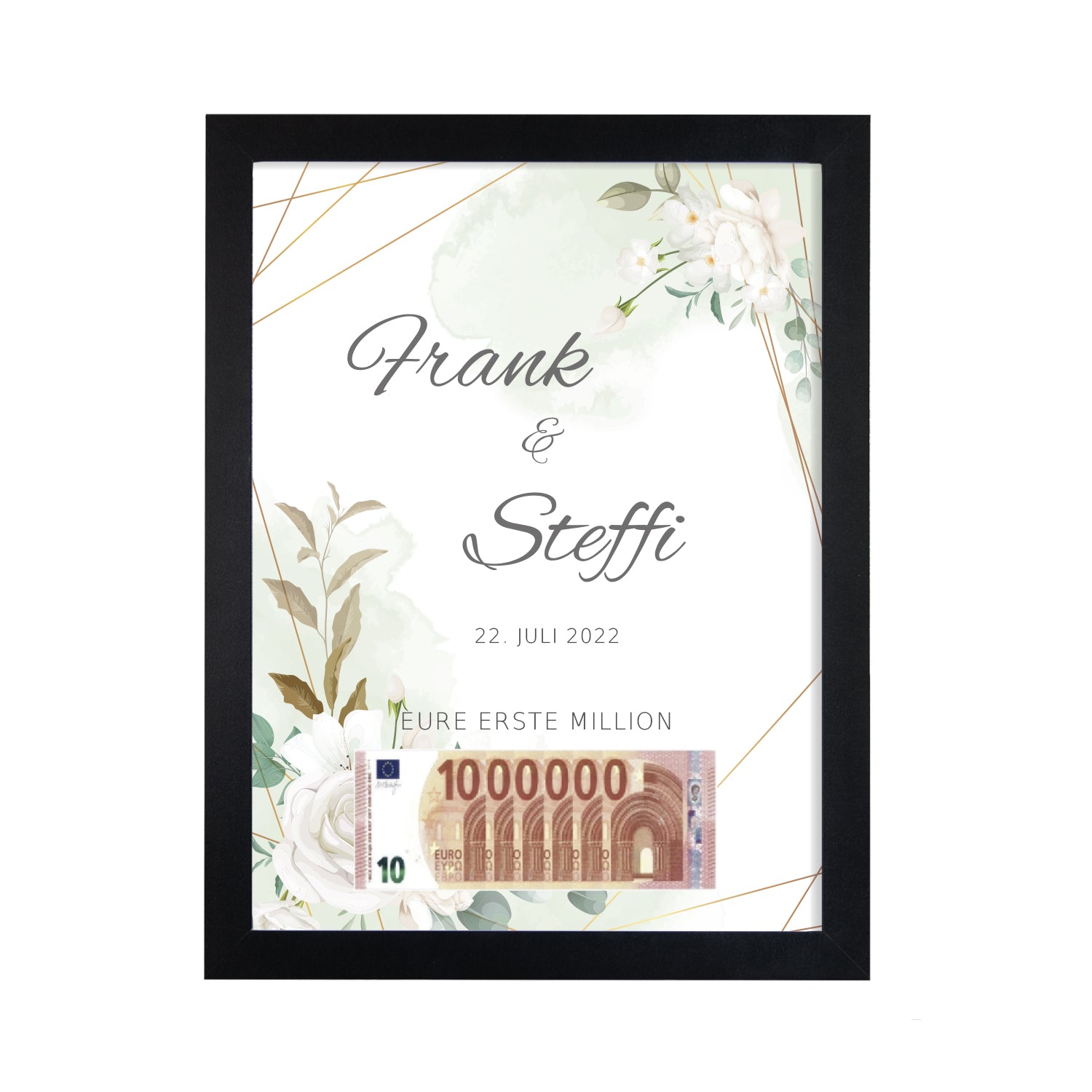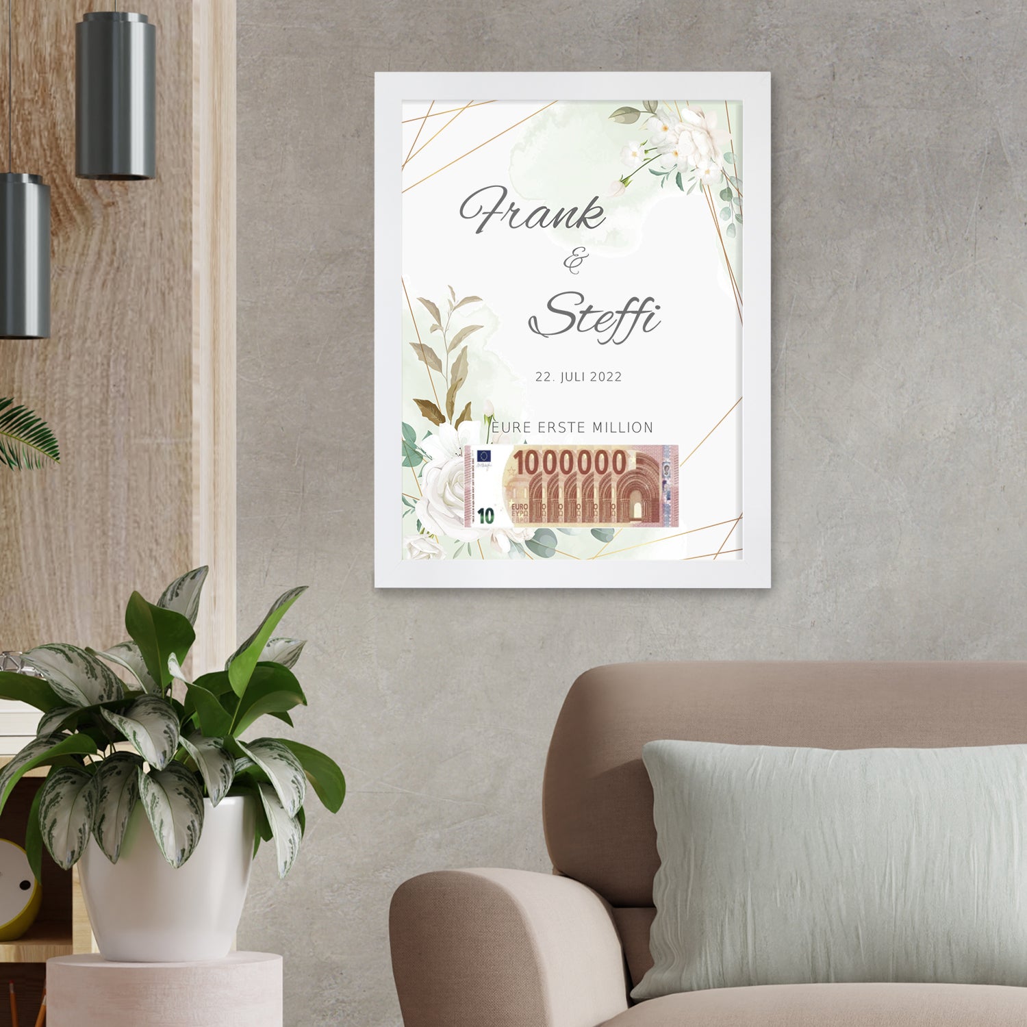 Wer träumt nicht davon, Millionär zu sein? Mit diesem originellen Wandbild verschenkst du zur Hochzeit oder zum Ehejubiläum symbolisch die erste Million – liebevoll, witzig und mit persönlicher Note.