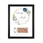 Das Bild hat die Größe DIN A3 und ist wahlweise mit oder ohne Rahmen erhältlich. Du kannst zwischen den Rahmenfarben Schwarz oder Weiß wählen – so passt das Geschenk zu jedem Einrichtungsstil. Ob modern, romantisch oder klassisch: Diese „Erste Million“ macht an jeder Wand eine gute Figur.