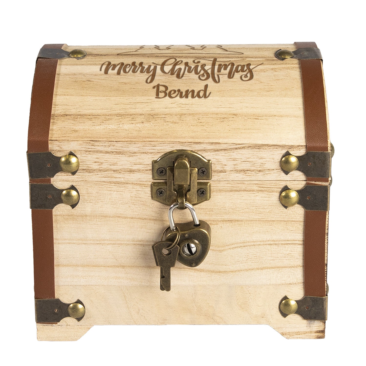 Verschenke Geld zu Weihnachten diesmal auf eine ganz besondere und liebevolle Art: mit unserer personalisierten Weihnachts-Schatztruhe aus Holz. Die kleine Truhe im Vintage-Look ist nicht nur eine originelle Geschenkverpackung, sondern zugleich ein wunderschönes Erinnerungsstück, das lange über die Feiertage hinaus Freude bereitet.