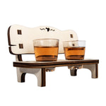 Zwei Schnapsgläser aus Glas sind in passgenauen Aussparungen der Sitzfläche eingebettet