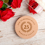Personalisierte Gravur: mit Kranz, „25“, „Zur Silberhochzeit“ & den beiden Wunschnamen des Paares