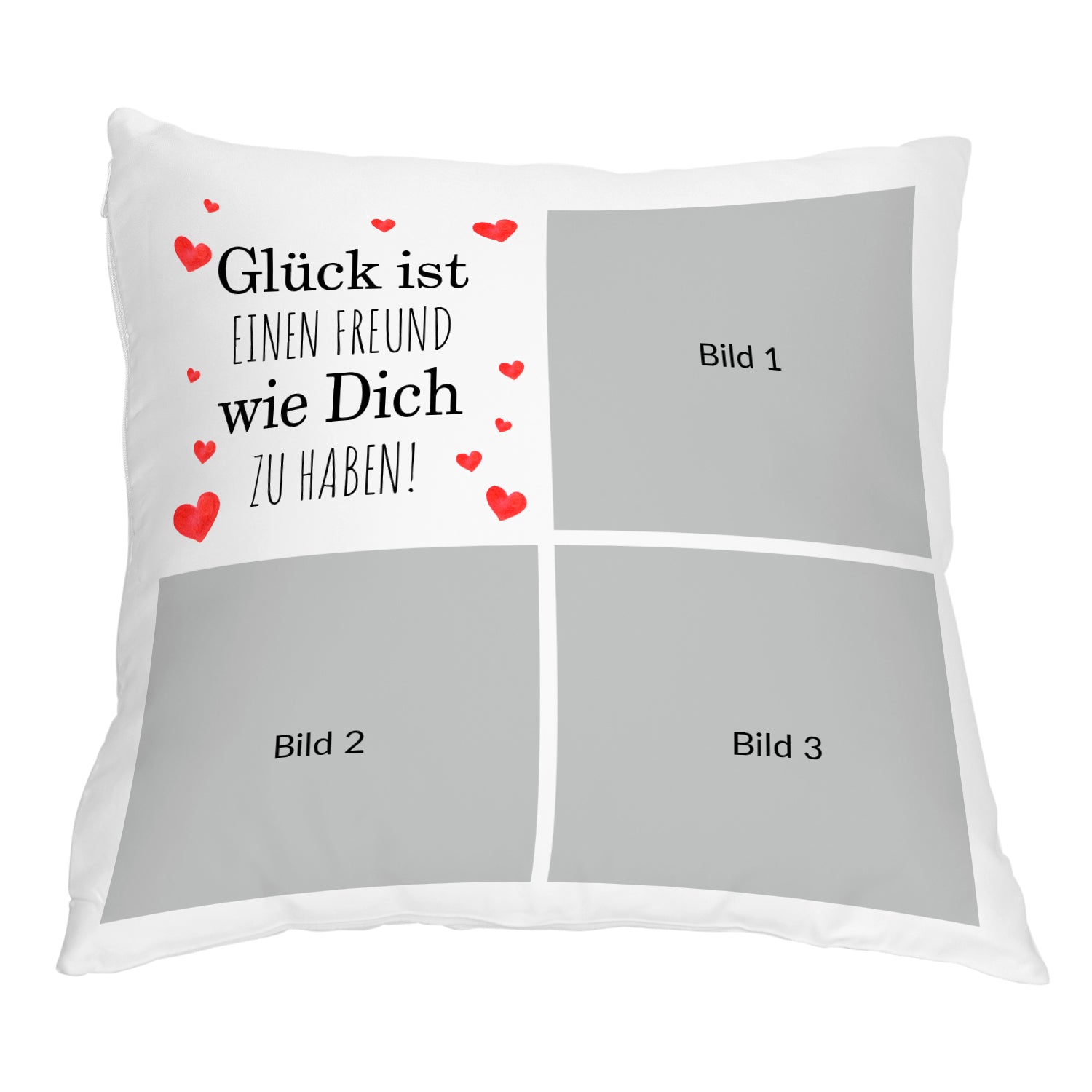 Das Kissen wird mit drei Deiner Lieblingsfotos bedruckt, sodass es zu einem einzigartigen Erinnerungsstück wird. Ergänzt wird das Design durch den Spruch: