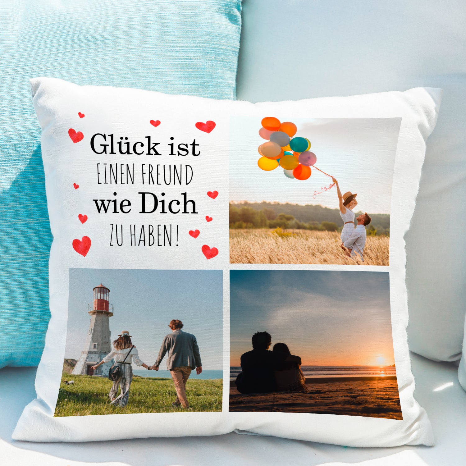 Verwandle Deine schönsten Erinnerungen in ein persönliches Liebesgeschenk, das Herz und Seele gleichermaßen berührt. Nach Bestelleingang wird Dein Kissen sorgfältig gefertigt und direkt zu Dir geliefert – für ein unvergessliches Geschenk voller Liebe.