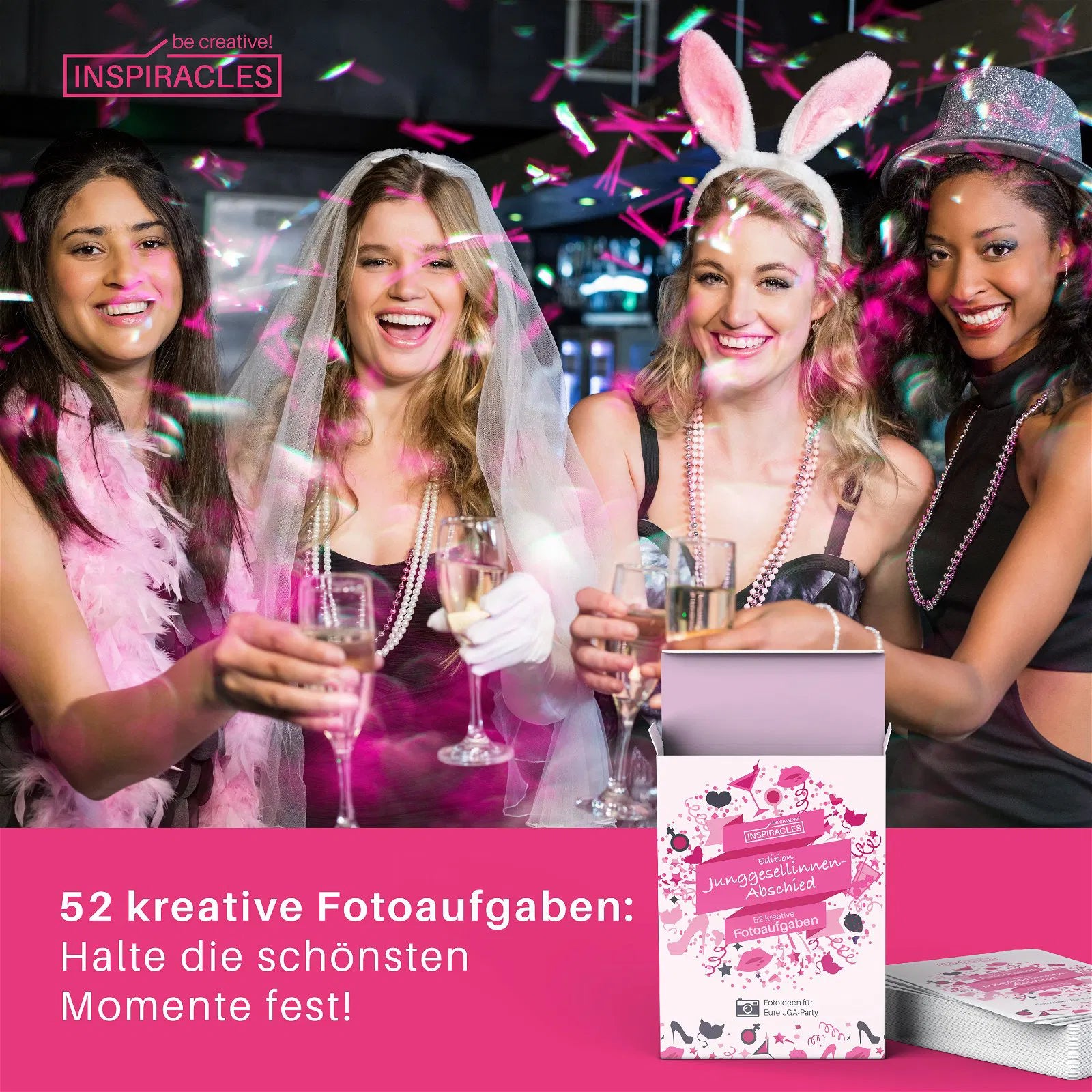 - Kreative Geschenkidee für den Polterabend: Überrasche die Braut mit einer witzigen Challenge – 52 witzige Aufgaben, die während des JGAs gelöst werden müssen.
