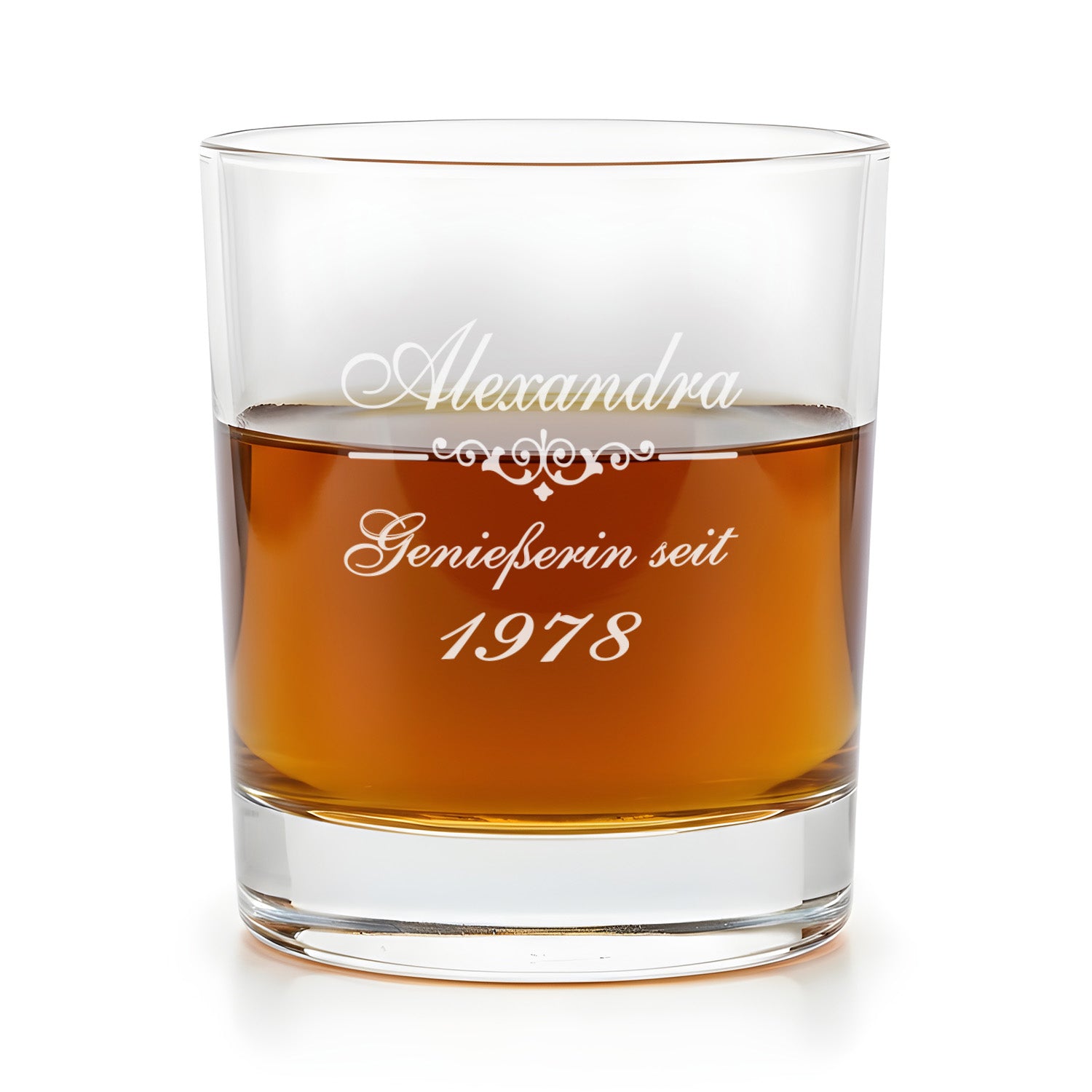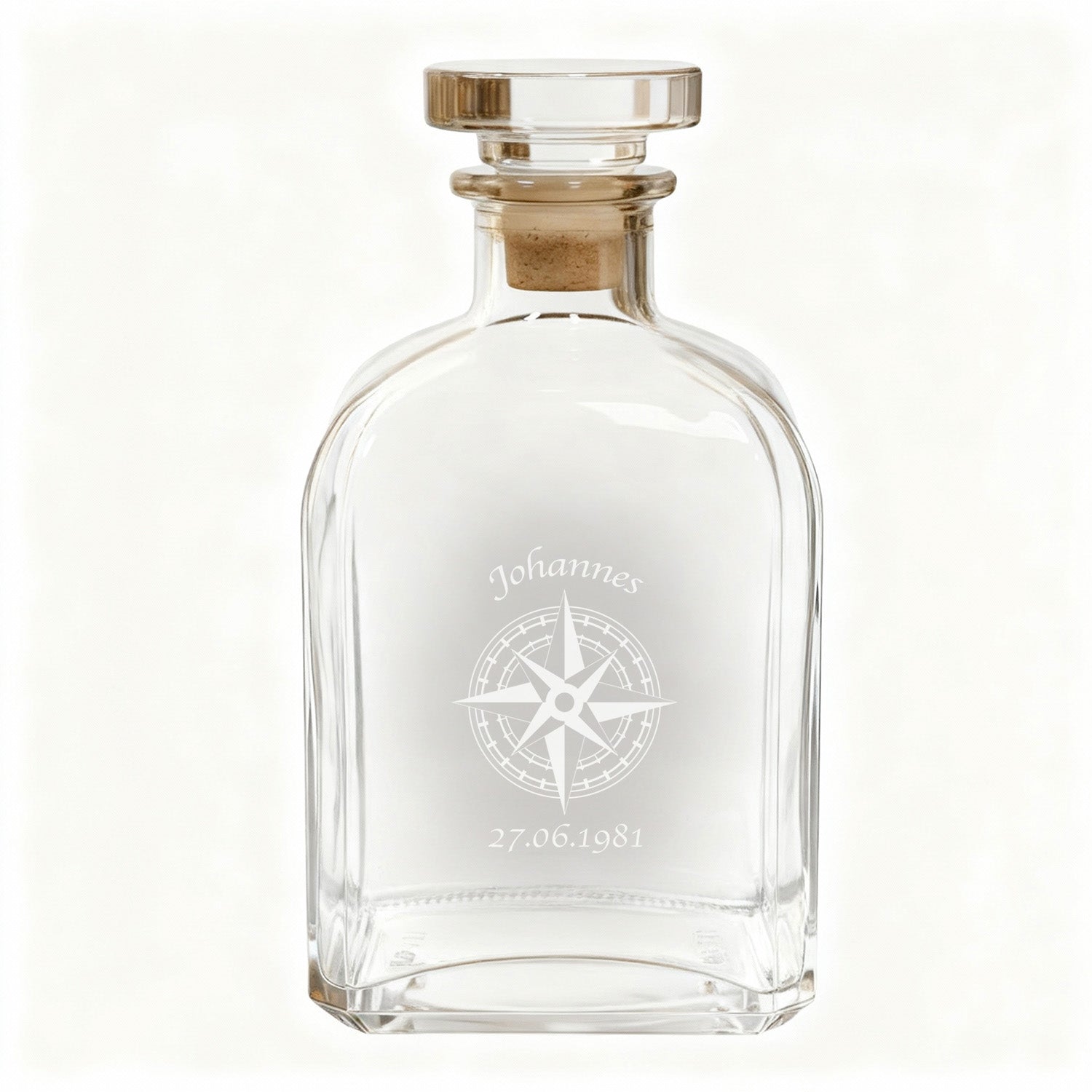 Die Karaffe aus hochwertigem Glas glänzt mit ihren edlen Rundungen und klassischem Design. Sie fasst ca. 700 ml und ist dabei etwa 18 cm hoch (inklusive Stopfen). Für den individuellen Touch stehen Dir drei Motive zur Auswahl: Die maritime Kompass-Windrose, unser beliebtes "Genuss"-Motiv (mit Wunschname und Jahreszahl) und das Motiv Wunschtext. Für letzteres kannst Du Deine ganz persönliche Widmung, einen Spruch oder ein Zitat wählen! Eine edle Karaffe ist schön und gut, aber alleine findest Du sie ein bisschen zu wenig? Kein Problem. Die passenden Gläser - mit dem gleichen Gravurmotiv versehen - kannst Du direkt mit bestellen. So wird aus einer Whiskykaraffe ein originelles Geschenkset für Genießer!
